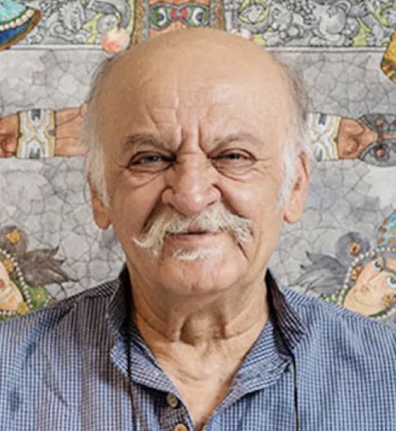 علیاکبر صادقی | Ali Akbar Sadeghi (Married; has three sons: Afshin, Arash, and Ali) (born 1937) is one of the most celebrated and prolific Iranian artists of the modern era. His work is a unique fusion of traditional Persian aesthetics—specifically the styles of Persian miniature, “Qahveh Khanehei” (Coffeehouse) painting, and ancient epic illustrations—with Western Surrealism.