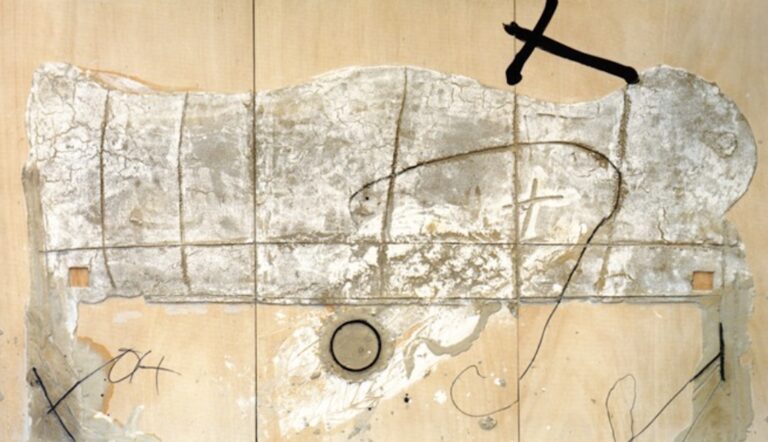 His “wall” paintings held deep political and spiritual resonance. Living under the oppressive dictatorship of Francisco Franco, which actively suppressed Catalan culture and language, Tàpies’s scarred and defaced surfaces served as silent protests and records of trauma. Simultaneously, influenced by Zen aesthetics, his work celebrated the beauty of the humble, the discarded, and the decaying.