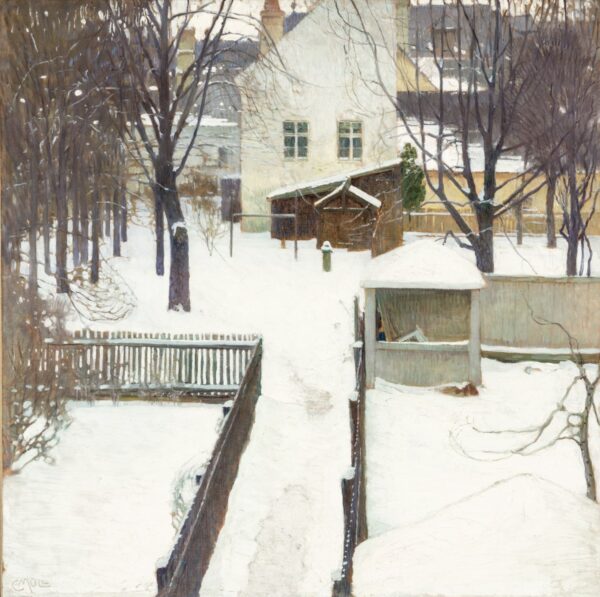 Moll began his formal education at the Academy of Fine Arts Vienna but found his true mentor in the landscape painter Emil Jakob Schindler. Moll became Schindler’s student and assistant, adopting his atmospheric, almost musical approach to landscape painting known as “Austrian mood impressionism.” After Schindler’s death in 1892, Moll married his widow, Anna, becoming the stepfather to Alma Mahler.
