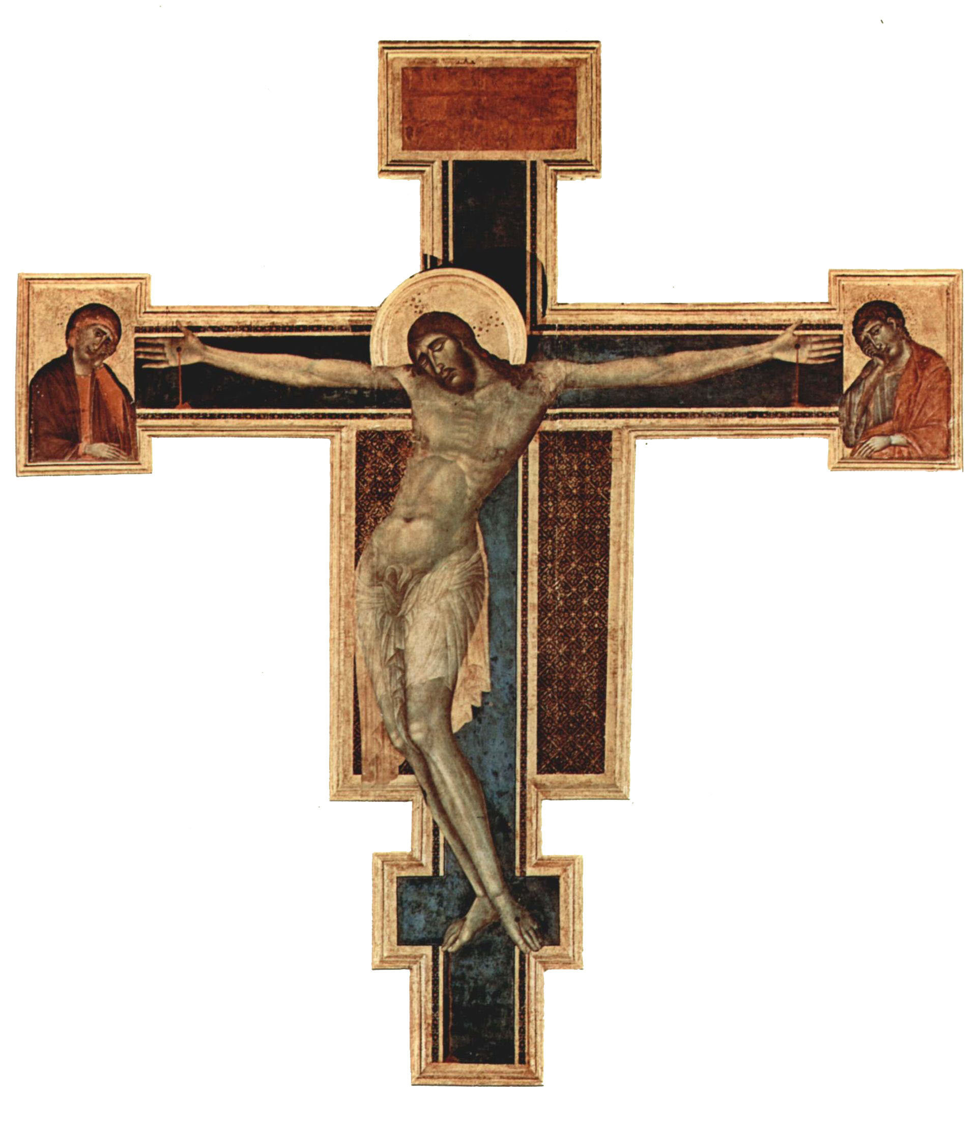 Although heavily influenced by Byzantine models, Cimabue is generally regarded as one of the first great Italian painters to break from the Italo-Byzantine style.[6] While medieval art then was scenes and forms that appeared relatively flat and highly stylized, Cimabue’s figures were depicted with more advanced lifelike proportions and shading than other artists of his time. According to Italian painter and historian Giorgio Vasari, Cimabue was the teacher of Giotto,[3] the first great artist of the Italian Proto-Renaissance. However, many scholars today tend to discount Vasari’s claim by citing earlier sources that suggest otherwise.[7]