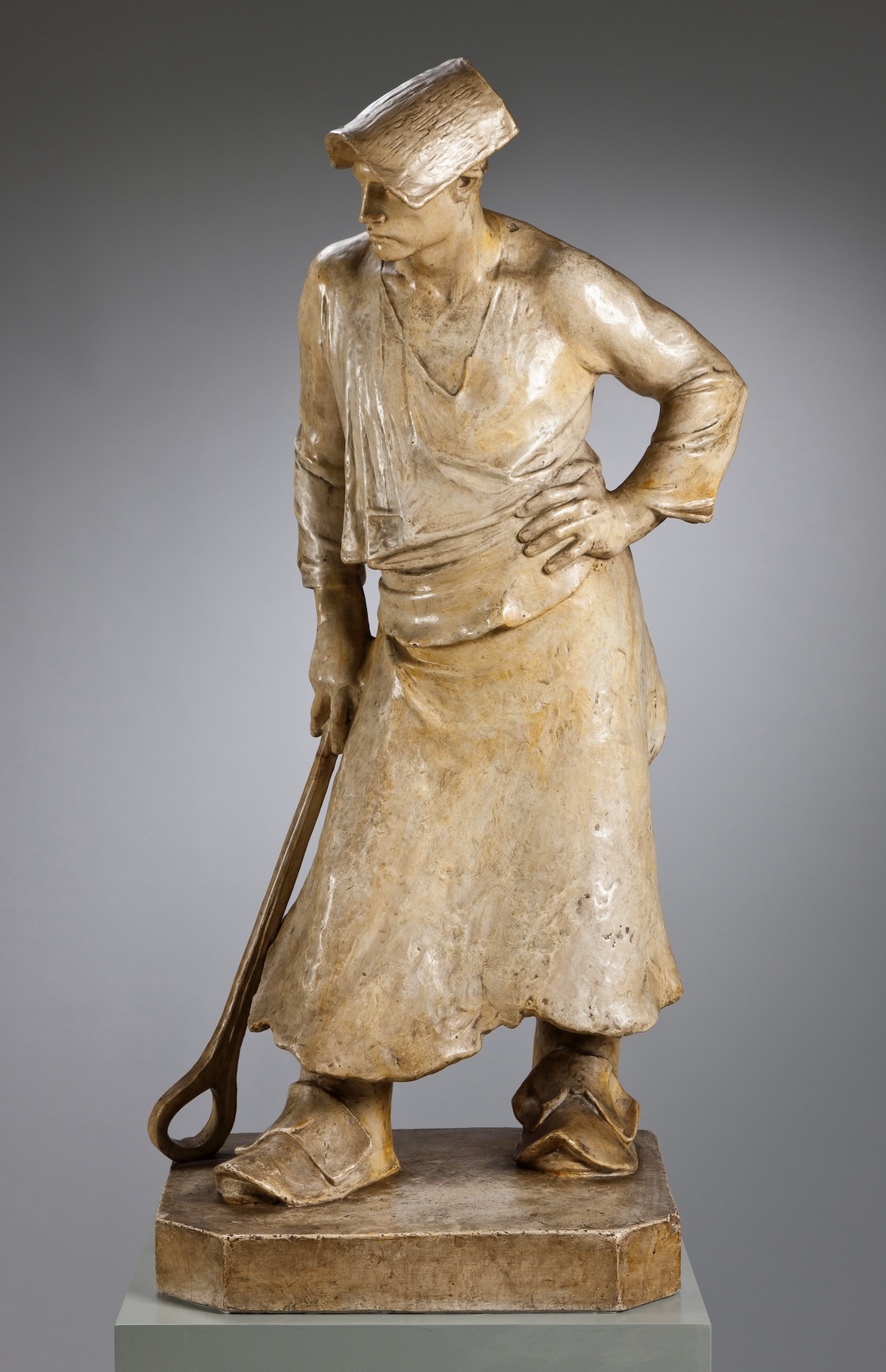 His true artistic awakening occurred in the late 1870s and 1880s when he visited the heavily industrialized Black Country (Hainaut) and the mining region of the Borinage in Belgium. Deeply moved by the harsh conditions, physical toll, and tragic accidents faced by the miners, factory workers, dockers, and glassblowers, Meunier radically shifted his focus. He returned to sculpture in 1885, realizing that three-dimensional forms were best suited to express the powerful, muscular tension and physical burden of the laborers.