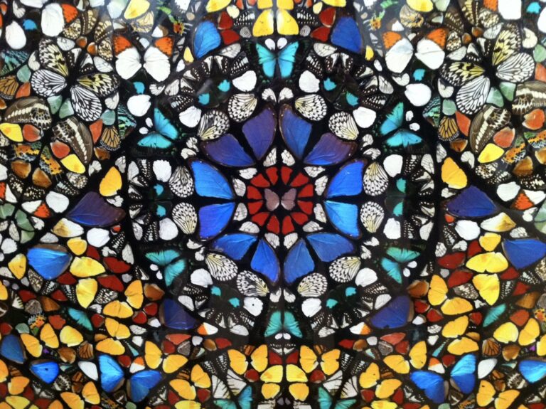 Alongside his installations, Hirst is known for his highly recognizable “Spot Paintings” (rows of randomly colored circles created by his assistants) and “Spin Paintings” (created using a rotating canvas). In 2007, he created For the Love of God, a platinum cast of an 18th-century human skull encrusted with 8,601 flawless diamonds, questioning the morality and economics of the modern art market.
