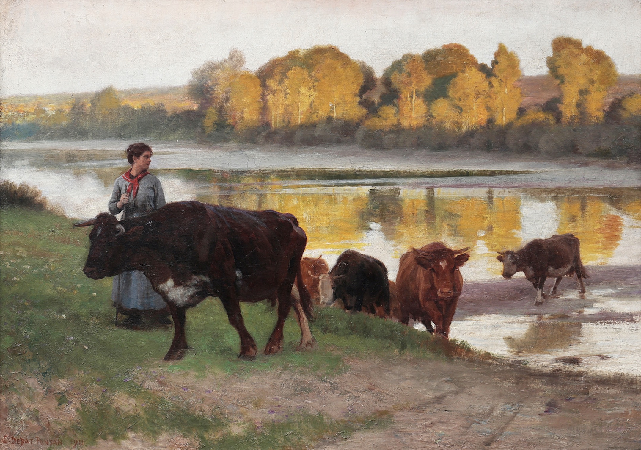 Édouard Bernard Debat-Ponsan (Spouse: Marguerite-Juliette Herpin; Daughter: Marguerite, who married the founder of modern French pediatrics, Robert Debré; Son: Jacques Debat-Ponsan, an architect; Grandson: Michel Debré, former Prime Minister of France) (1847–1913) was a prominent French academic painter celebrated for his masterful portraits, scenes of rural realism, and historical and Orientalist compositions.