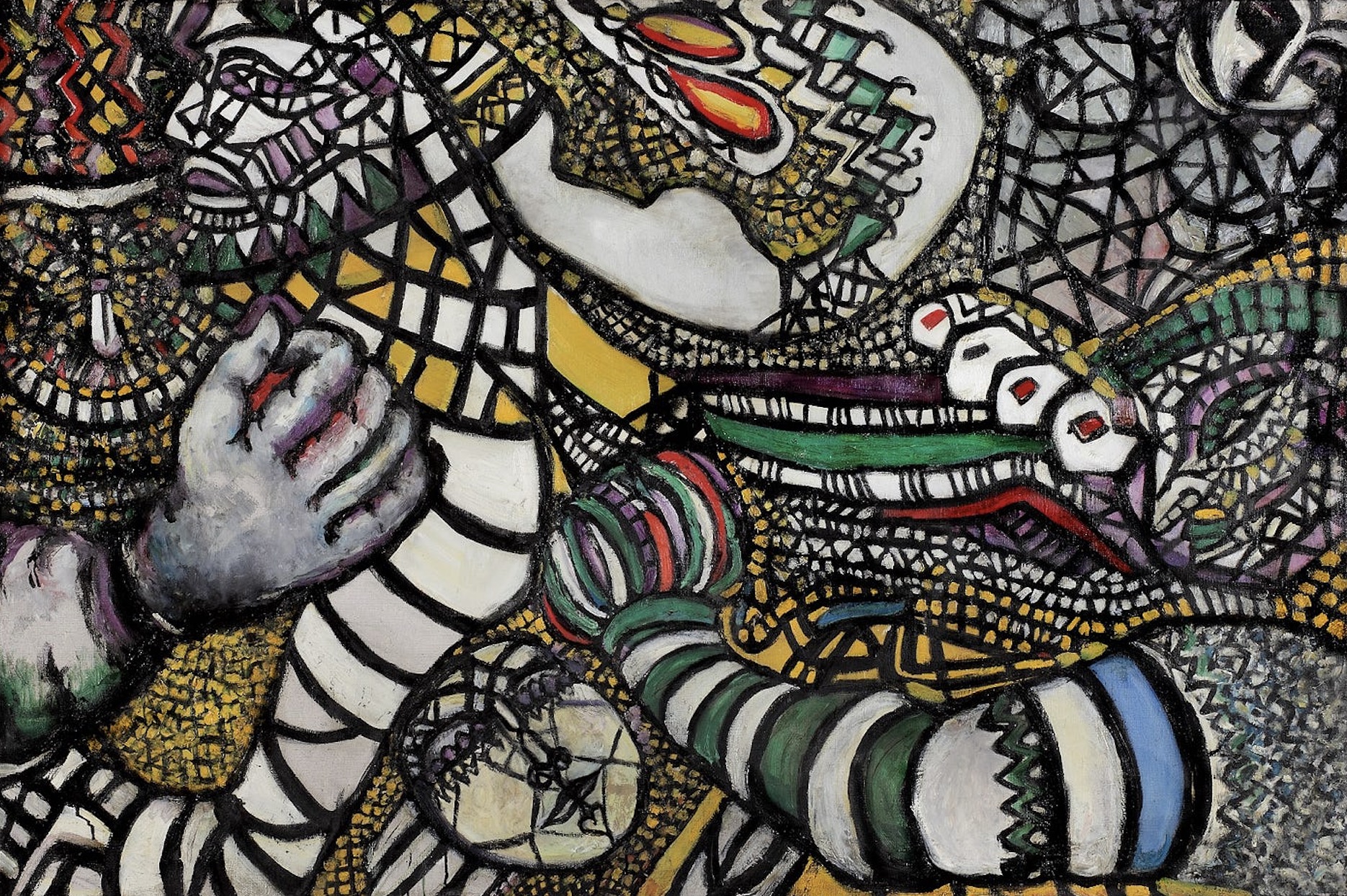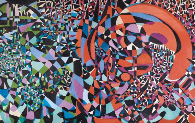 In the 1940s and 50s, Zeid became a prominent figure in the Nouvelle École de Paris. She developed a signature style characterized by massive canvases—some over five meters wide—filled with kaleidoscopic, geometric mosaics of vibrant color. These works, often described as “psychological abstraction,” were inspired by the shifting views she saw from airplanes and the intricate geometries of stained glass and mosaics.