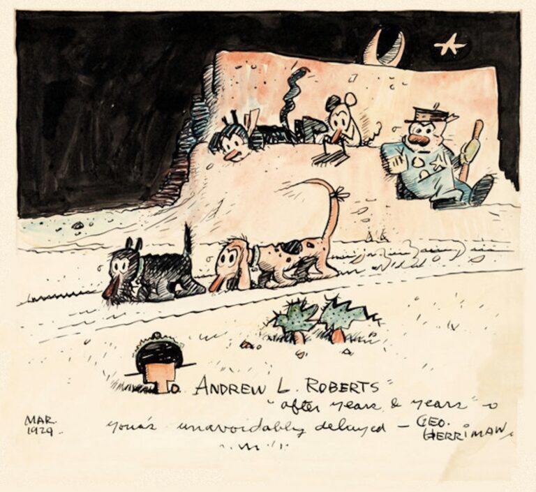 Despite low circulation compared to its contemporaries, the strip was kept alive for over 30 years by its biggest fan, media mogul William Randolph Hearst. Herriman’s work remains a cornerstone of the “ninth art,” influencing generations of creators from Will Eisner and Charles Schulz to Art Spiegelman and Chris Ware.