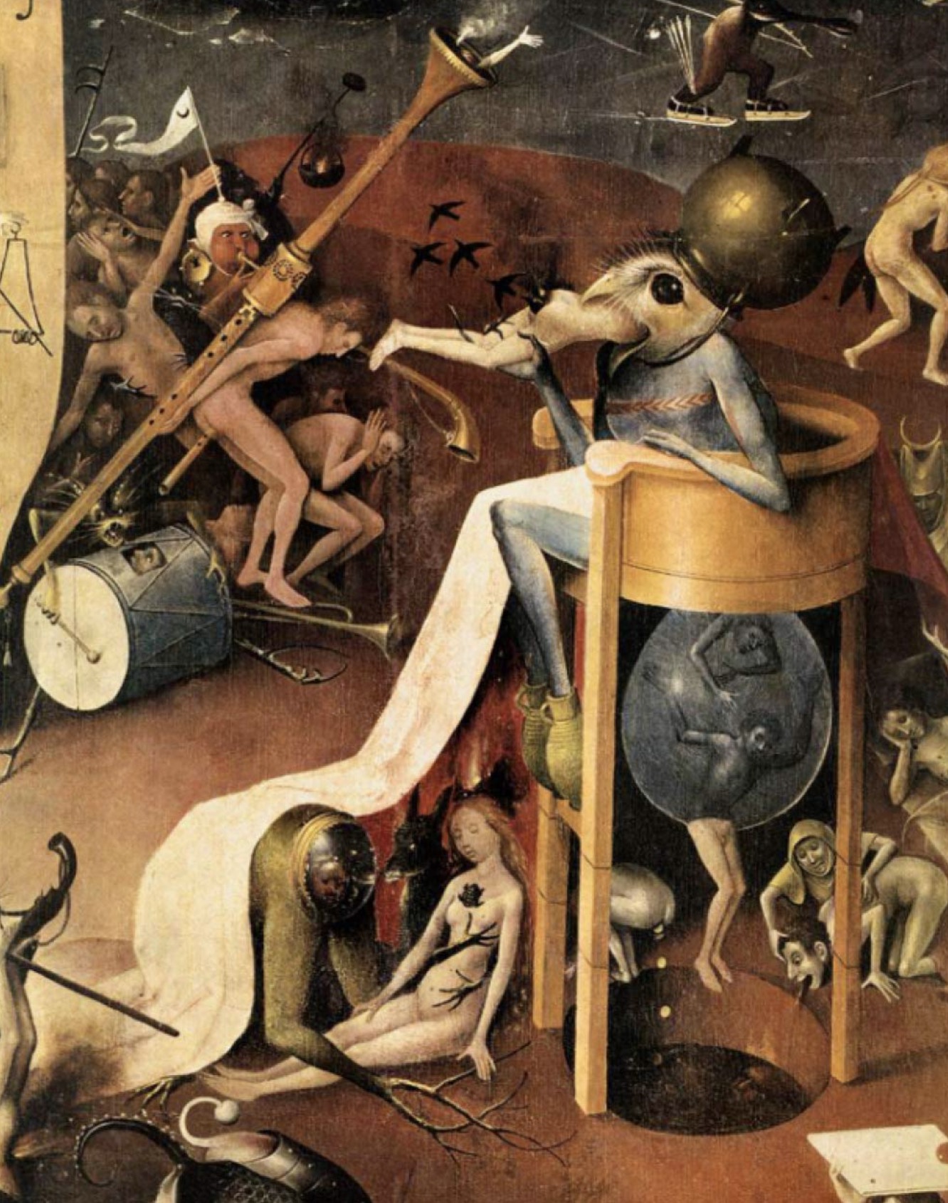 Bosch is most famous for his large-scale triptychs packed with nightmarish visions of hell, bizarre hybrid creatures, and intricate symbolic narratives. His undisputed masterpiece is The Garden of Earthly Delights (c. 1490–1510). Reading from left to right, the triptych depicts the purity of Eden, a surreal and lustful central panel teeming with naked figures and giant fruits, and finally, a terrifying, musical hellscape punishing human folly.
