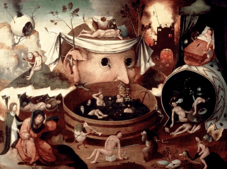 Born Jheronimus van Aken into a family of painters in the prosperous city of ‘s-Hertogenbosch, he eventually adopted the name of his hometown (“Bosch”) to sign his paintings. He lived his entire life in the city and became a prominent member of the Brotherhood of Our Lady, a highly respected, conservative religious confraternity devoted to the Virgin Mary. This intense religious environment deeply informed his worldview and the moralistic warnings present in his art.