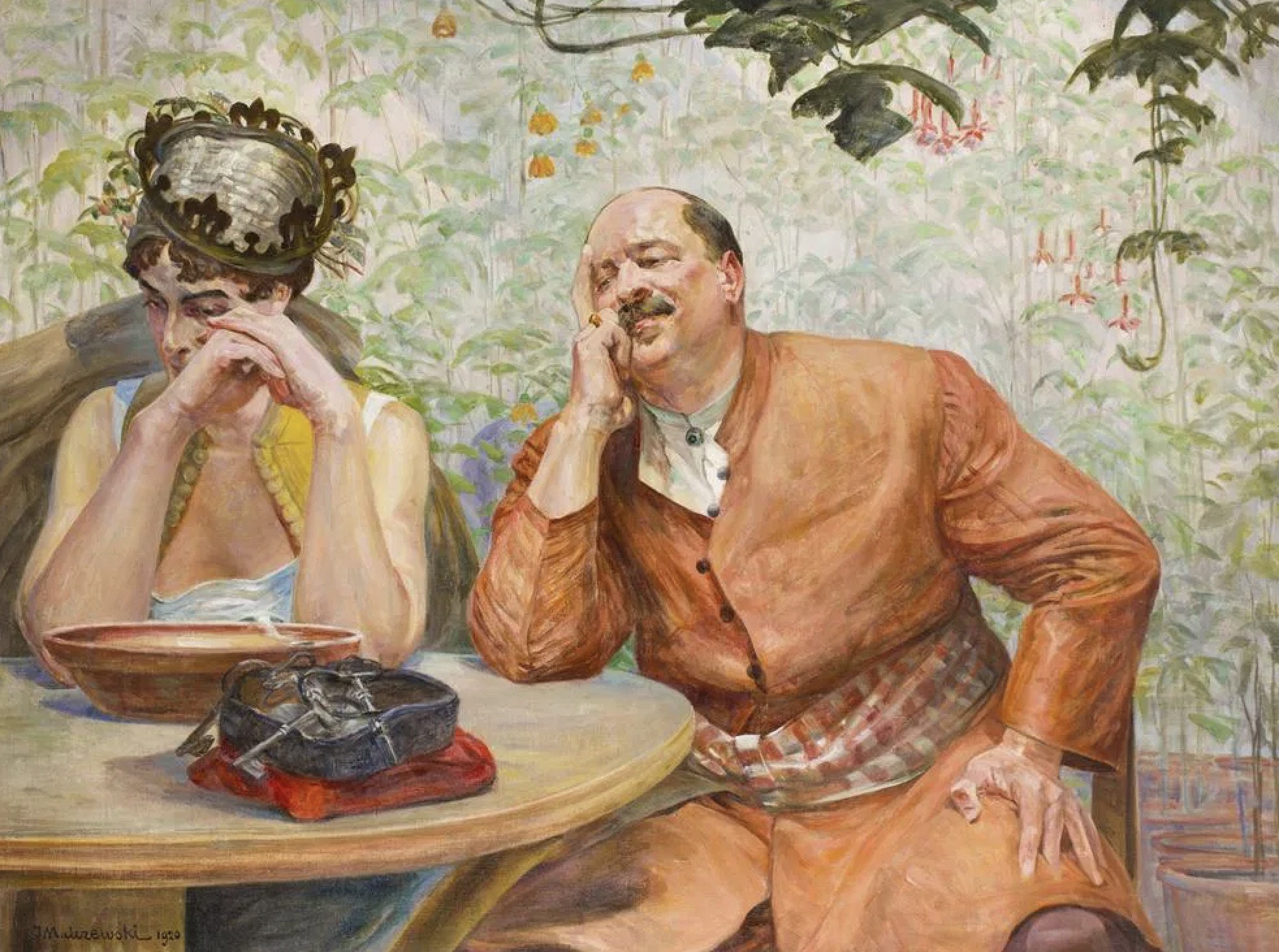 His mature style is highly distinct, characterized by a fusion of intense, realistic detail with surreal, dreamlike apparitions. His canvases are populated by a complex cast of characters: Polish exiles, angels, chimeras, fauns, and figures from Greek mythology mingling with peasants in the lush Polish countryside. He frequently included himself in his paintings, often dressed in elaborate costumes or armor, displaying a trademark sense of theatricality and self-awareness.