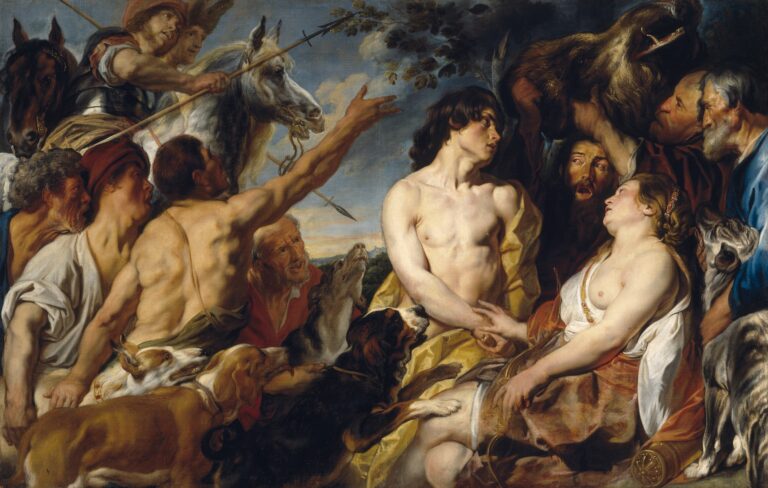Following the death of Rubens in 1640 and Van Dyck in 1641, Jordaens became the premier painter in Antwerp. He took over many of Rubens’ unfinished commissions and received patronage from royalty across Europe, including the courts of Spain and Sweden. Interestingly, despite converting to Calvinism later in life, he continued to receive and fulfill highly visible commissions for Catholic churches until he died from an outbreak of a mysterious illness known as the “sweating sickness” in 1678.