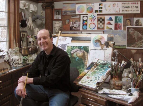 James Gurney (born 1958) is a contemporary American artist, illustrator, and author, best known for his meticulously painted, world-building masterpiece, the Dinotopia book series, and his profound contributions to art education.
