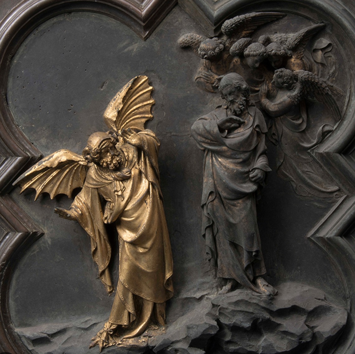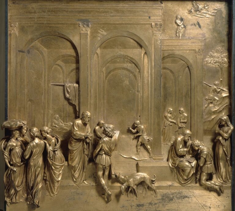 Born in Pelago, near Florence, Ghiberti was trained in the goldsmith’s trade by his stepfather, Bartoluccio. His career—and arguably the history of the Renaissance—was defined in 1401 when he won a famous competition against Filippo Brunelleschi to design the bronze North Doors of the Florence Baptistery. His winning panel, The Sacrifice of Isaac, displayed a mastery of composition and casting that secured him the commission, which took 21 years to complete (1403–1424).