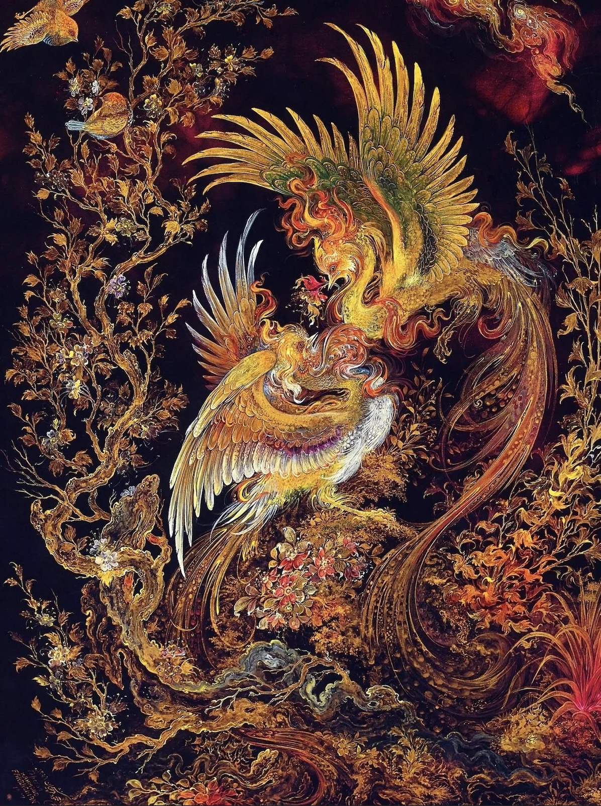 Mahmoud Farshchian (1930–2025) was a master of Persian miniature painting and one of the most celebrated and internationally recognized figures in contemporary Iranian art. Born in Isfahan, a city renowned for its rich artistic and architectural heritage, he was exposed to visual beauty early in life. His father, a Persian carpet merchant, recognized and encouraged his exceptional talent, leading him to study under the tutelage of prominent masters Haj Mirza-Agha Emami and Isa Bahadori.