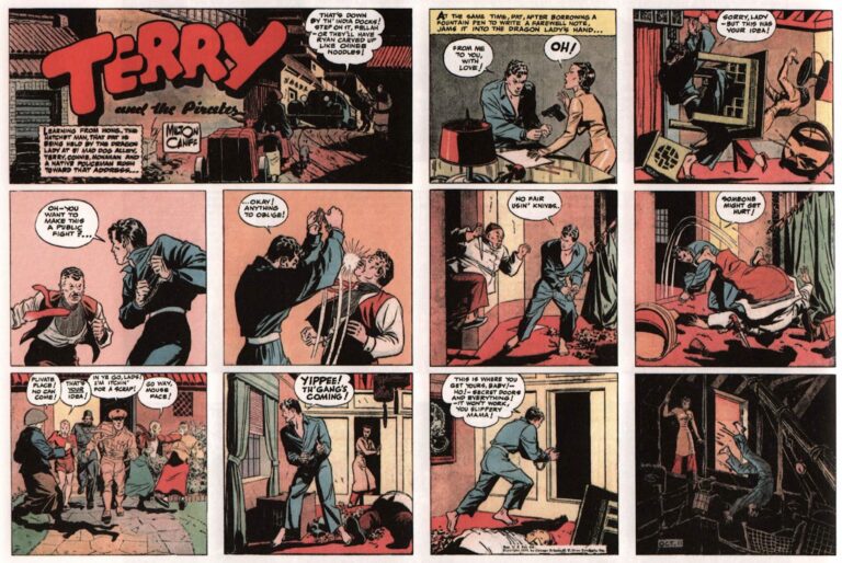 After graduating from Ohio State University, Caniff began his career in the art departments of various newspapers. In 1934, he was hired by the Chicago Tribune-New York News Syndicate to create a new adventure strip. The result was Terry and the Pirates. Originally a juvenile adventure set in China, the strip evolved into a gritty, complex drama that introduced iconic characters like the Dragon Lady and Pat Ryan. Caniff’s mastery lay in his revolutionary use of chiaroscuro—using heavy blacks and dramatic shadows to create mood and depth, much like the Film Noir style of cinema.