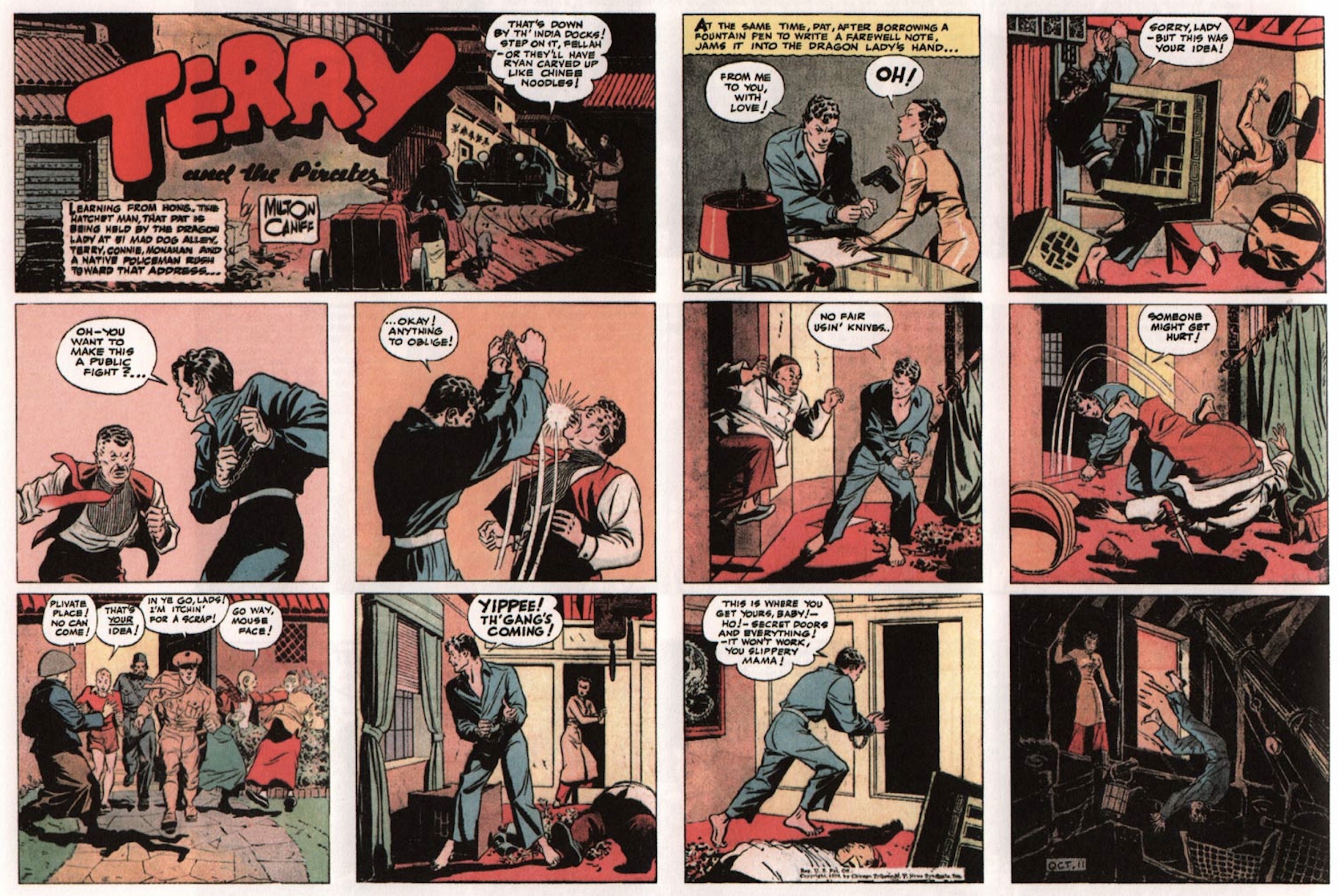 During World War II, Caniff created a special version of his work titled Male Call specifically for military newspapers (Camp Newspaper Service). Because the syndicate owned the rights to Terry and the Pirates, Caniff took the rare and bold step of leaving his successful creation in 1946 to launch a strip he would own himself: Steve Canyon. This adventure series about a veteran pilot became a massive success and ran until Caniff’s death in 1988.