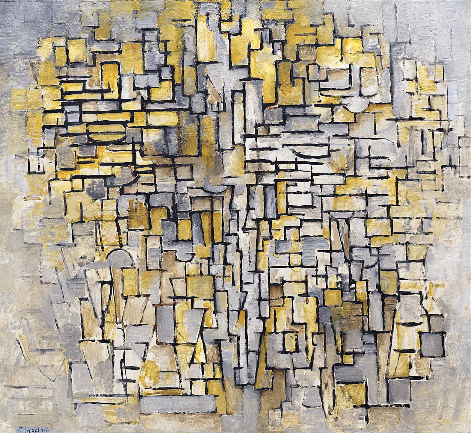 He was a contributor to the De Stijl art movement and group, which he co-founded with Theo van Doesburg. He evolved a non-representational form which he termed Neoplasticism. This was the new ‘pure plastic art’ which he believed was necessary in order to create ‘universal beauty’. To express this, Mondrian eventually decided to limit his formal vocabulary to the three primary colors (red, blue and yellow), the three primary values (black, white and gray) and the two primary directions (horizontal and vertical). Mondrian’s arrival in Paris from the Netherlands in 1911 marked the beginning of a period of profound change. He encountered experiments in Cubism and with the intent of integrating himself within the Parisian avant-garde removed an ‘a’ from the Dutch spelling of his name (Mondriaan).