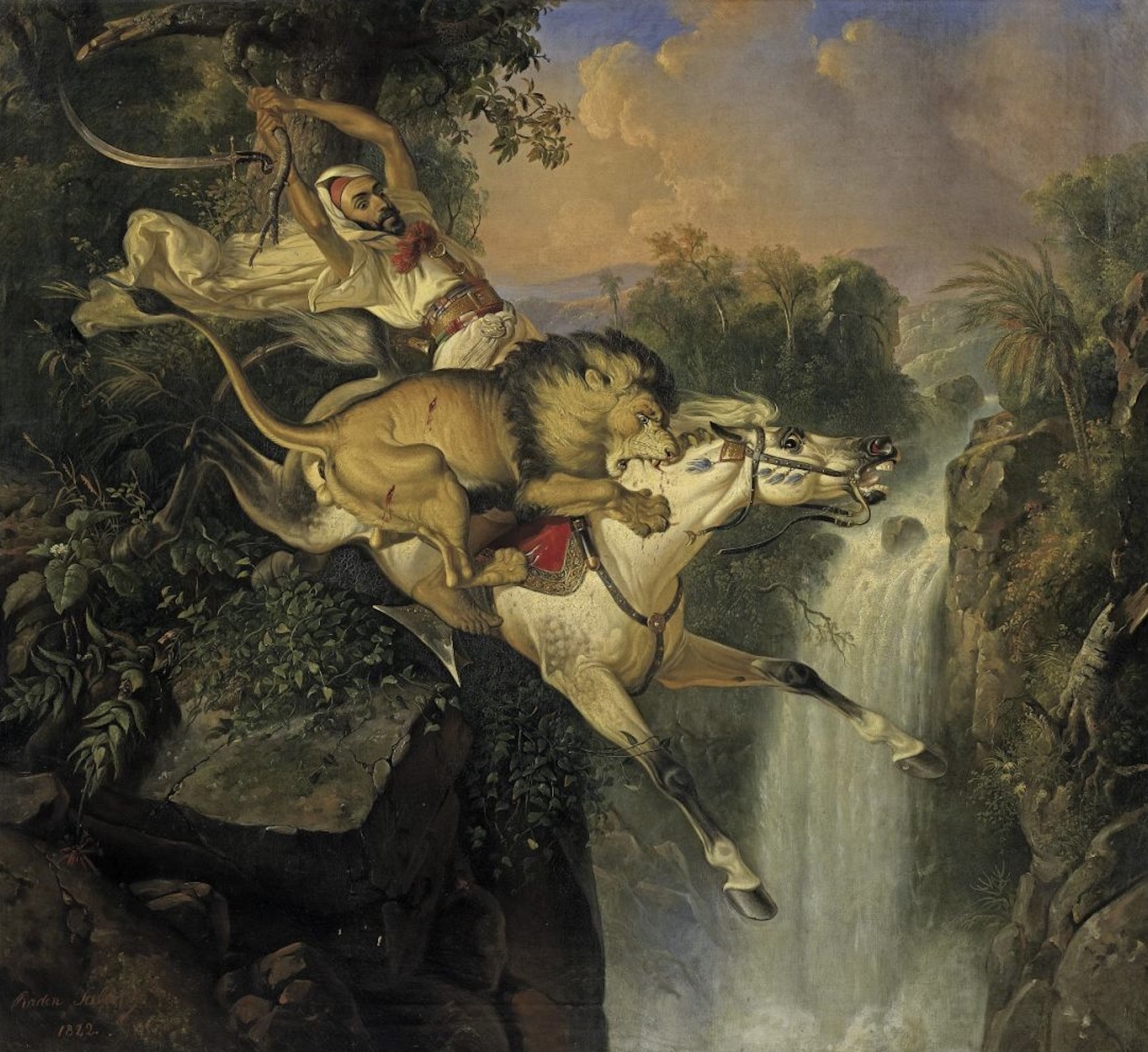 Born into an aristocratic Arab-Javanese family, his artistic journey began under the tutelage of Belgian painter Antoine Payen. Recognizing his extraordinary talent, the Dutch colonial government sent him to the Netherlands in 1829. There, he studied under masters like Cornelis Kruseman and Andreas Schelfhout. He spent over 20 years in Europe, traveling to Paris, Dresden, and Gotha, where he became a celebrated figure in royal courts and was deeply influenced by the emotional intensity of Eugène Delacroix.