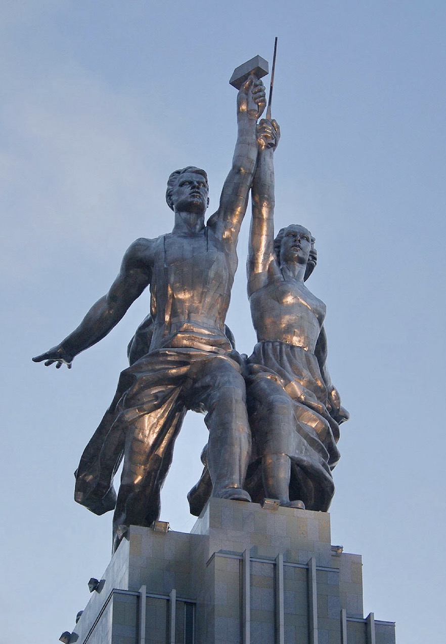 Mukhina’s career reached its zenith in 1937 with the creation of her masterpiece, Worker and Kolkhoz Woman. Standing nearly 25 meters tall and crafted from gleaming stainless steel, the sculpture was designed for the Soviet Pavilion at the International Exposition in Paris. The figures, holding aloft a hammer and sickle, were praised for their “Art Deco” energy and became a global icon of industrial progress. Today, it stands as a permanent landmark in Moscow and serves as the famous logo for the Mosfilm cinema studio.