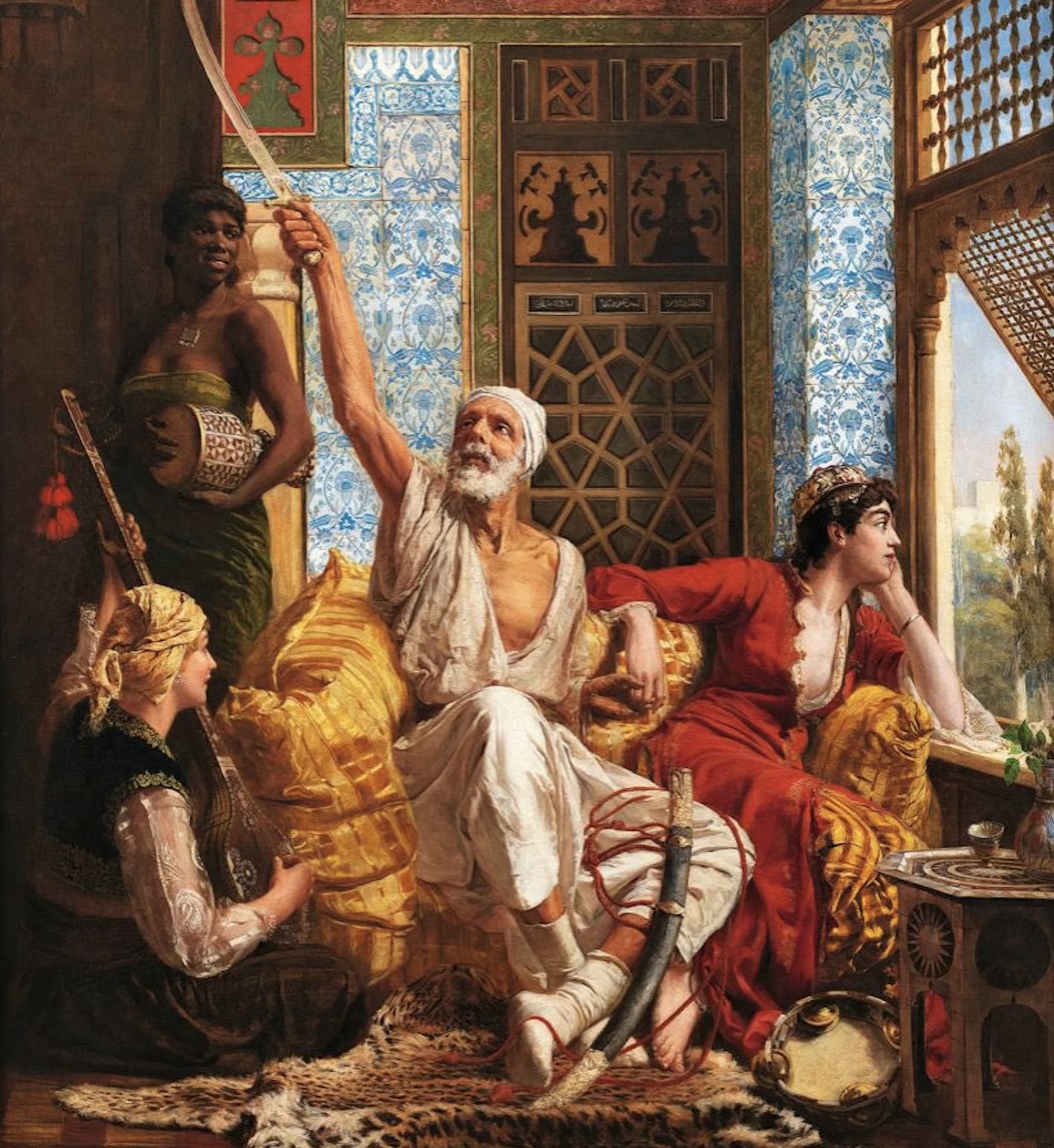 His works are celebrated for their meticulous ethnographic and architectural accuracy, capturing the vibrant everyday life, bustling street scenes, and varied cultures of the Middle East and North Africa without the overly exaggerated romanticism typical of the era. Works like The French in Cairo (1884), The Water Seller (A Cairo Street), and The Distraction demonstrate his skill in multi-figural composition, intricate latticework (mashrabiya), and his nuanced understanding of bright, natural lighting.
